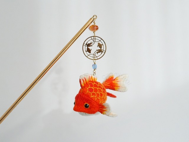 手毬金魚 りゅうきん「紅-Beni」かんざし