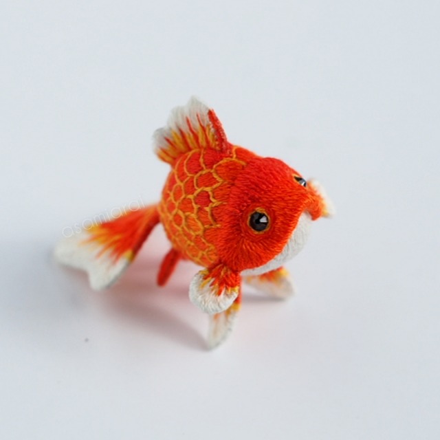 【立体刺繍オブジェ】チビ手毬金魚 りゅうきん「散色-sansyoku」