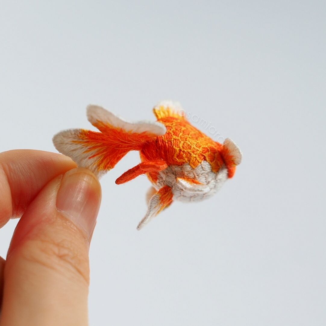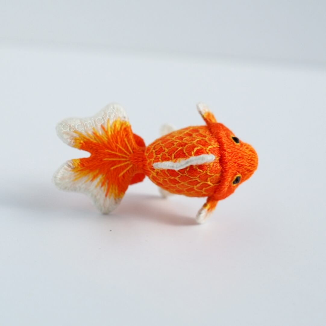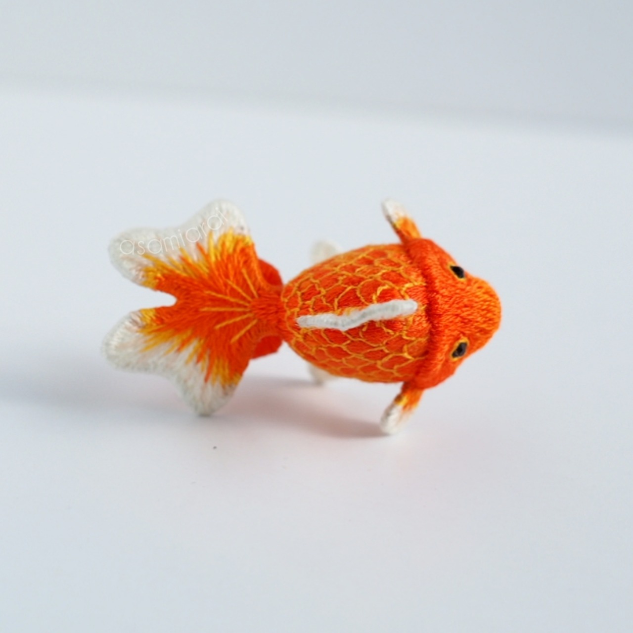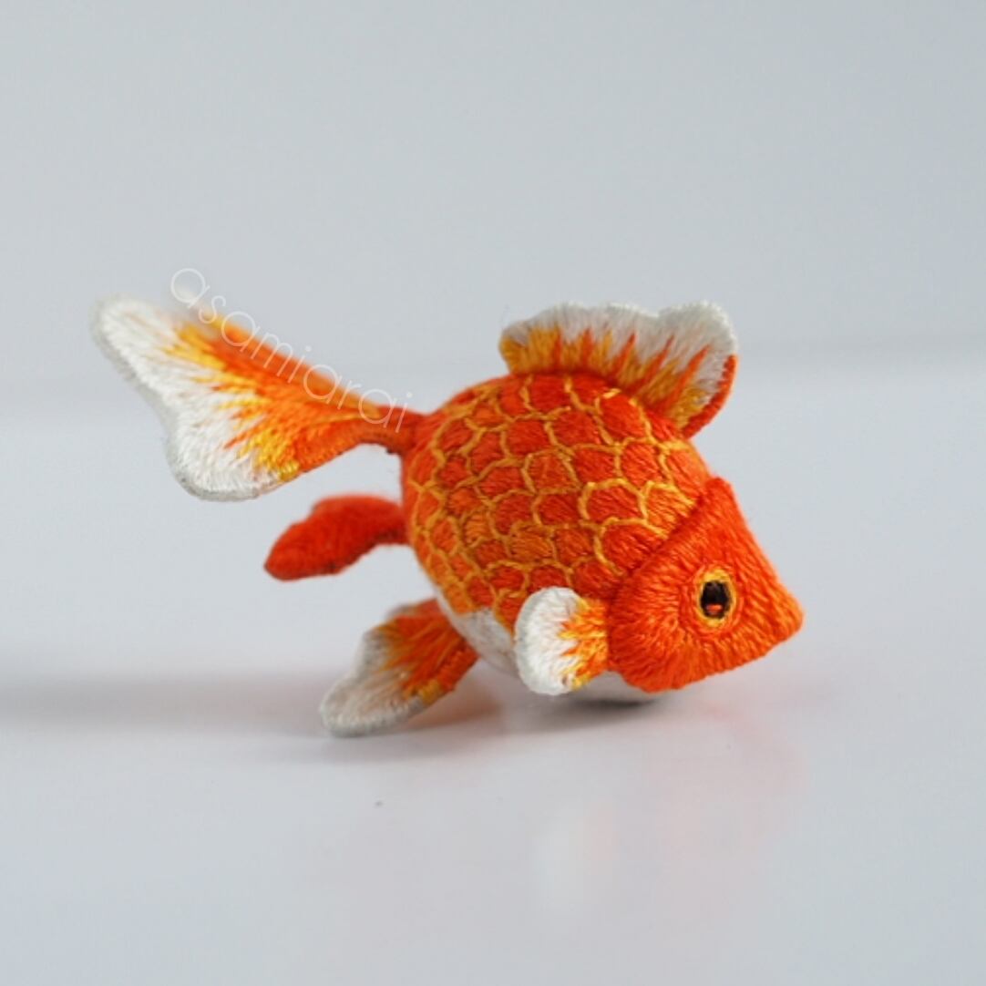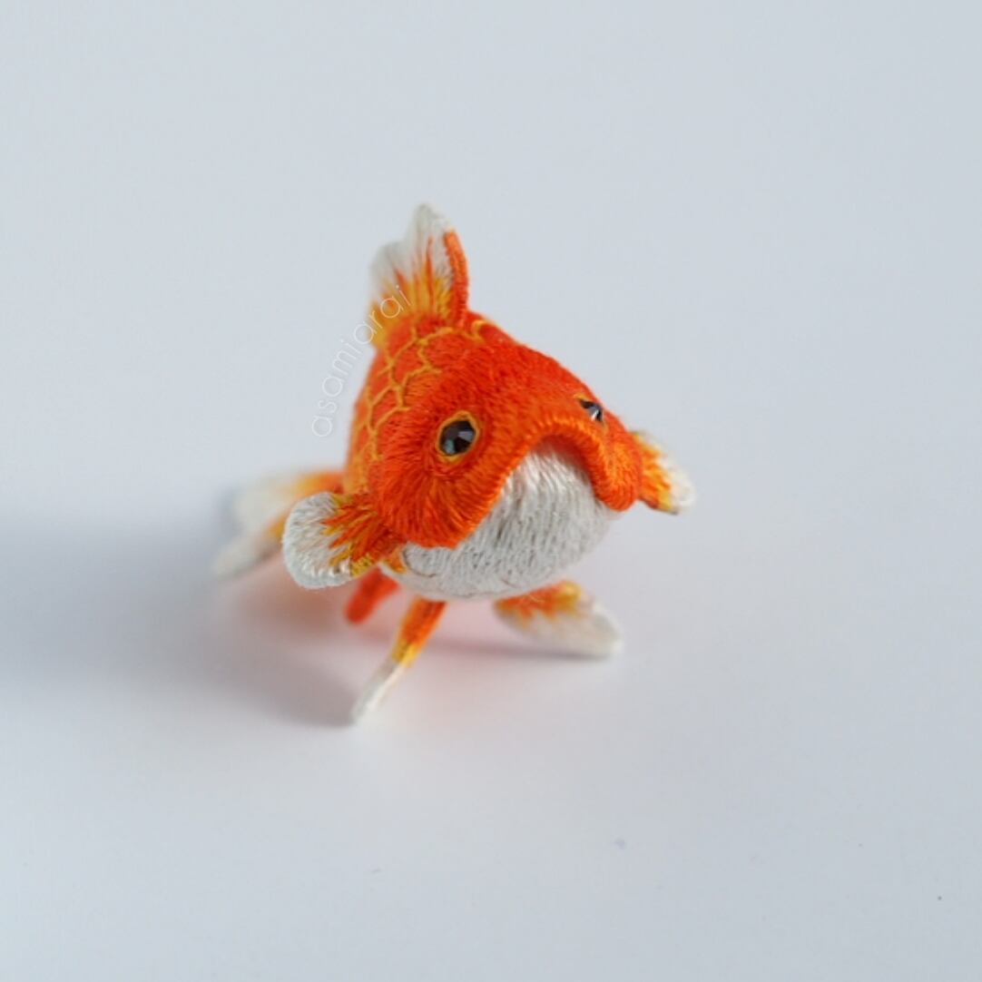 【立体刺繍オブジェ】ミニ手毬金魚 リュウキン「朱 akane」