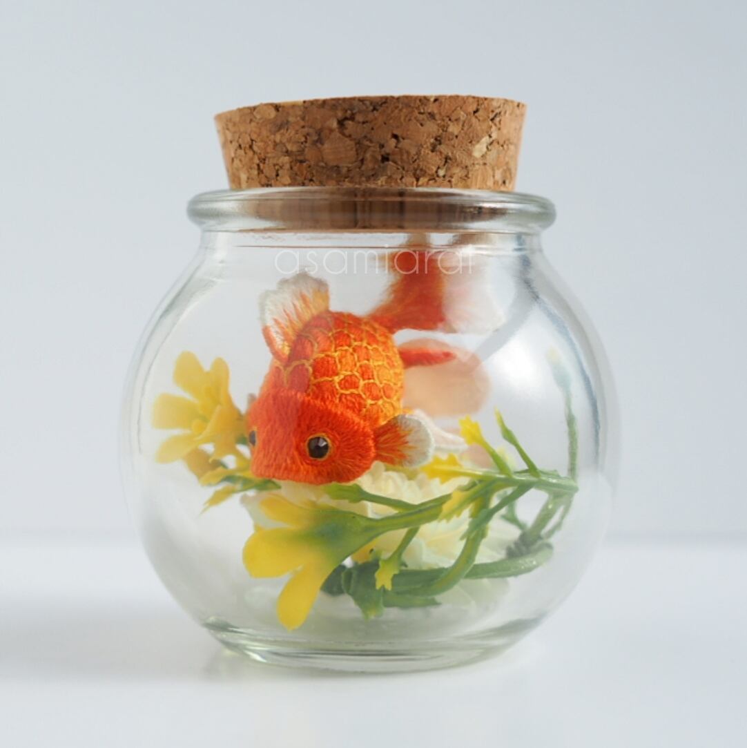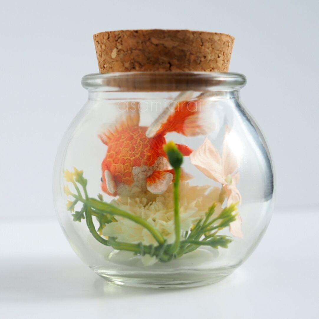 ※配送中の衝撃で、ボトル内で造花や金魚の位置がずれてしまうことがあります。お手元に届いた際に、金魚が居心地よさそうな具合に調整して頂けますと幸いです。