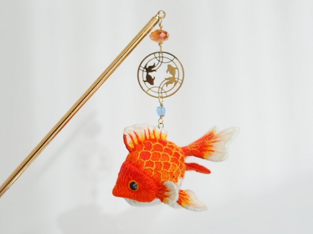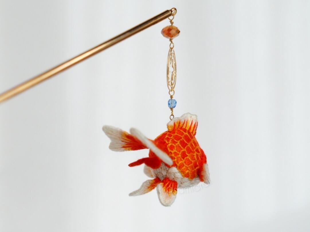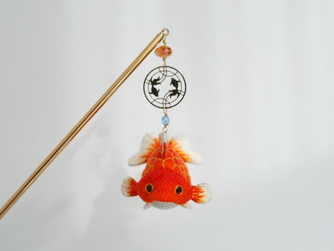 手毬金魚 りゅうきん「紅-Beni」かんざし